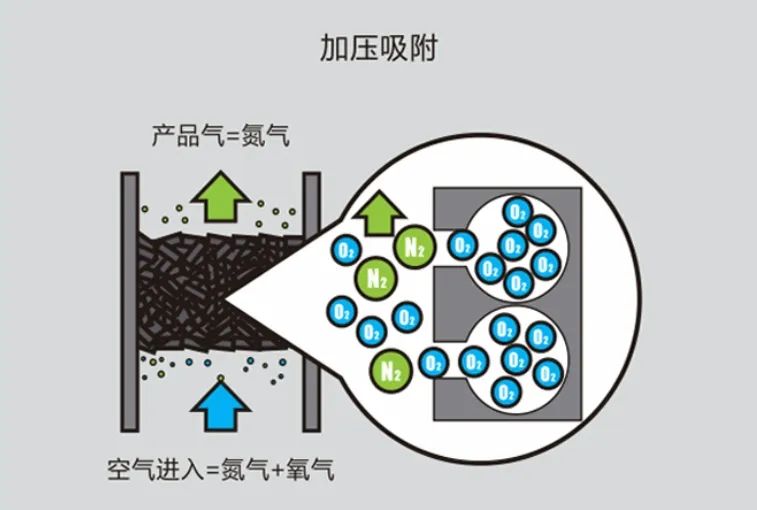 吸附塔主要是通過變壓吸附產(chǎn)出氮?dú)?。變壓吸附分離氧氣和氮?dú)馐抢梦絼?duì)特定氣體在不同壓力狀態(tài)上吸附和解析能力的差異進(jìn)行分離的。在吸附平衡情況下,一種吸附劑在同一氣體時(shí),氣體壓力越高,則吸附劑的吸附量越大。反之,壓力越低,則吸附量越小。