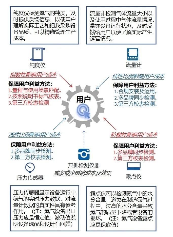 保障產(chǎn)品質(zhì)量離不開檢測(cè),制氮機(jī)也如此。為了保證制氮機(jī)的正常使用,需要對(duì)其進(jìn)行計(jì)量檢測(cè)。合理的檢測(cè)可以幫助生產(chǎn)企業(yè)快速發(fā)現(xiàn)設(shè)備異常,及時(shí)進(jìn)行處理,避免不必要的損失和安全風(fēng)險(xiǎn),同時(shí)可以提高企業(yè)的生產(chǎn)能力,降低企業(yè)的生產(chǎn)成本。氣體的流量、品質(zhì)和穩(wěn)定性對(duì)生產(chǎn)的效率和質(zhì)量至關(guān)重要,我們可以通過流量計(jì)、純度儀、壓力表和露點(diǎn)儀等檢測(cè)儀器對(duì)制氮機(jī)產(chǎn)生的氣體進(jìn)行檢測(cè),確保氮?dú)馄焚|(zhì)。